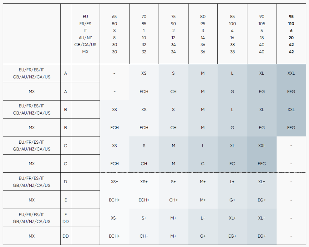 Velikosti podprsenek sahají daleko za běžně známou DD-kupou. Ve sloggi nabízíme rozsáhlou škálu velikostí, aby si každý mohl najít dokonalé padnutí: